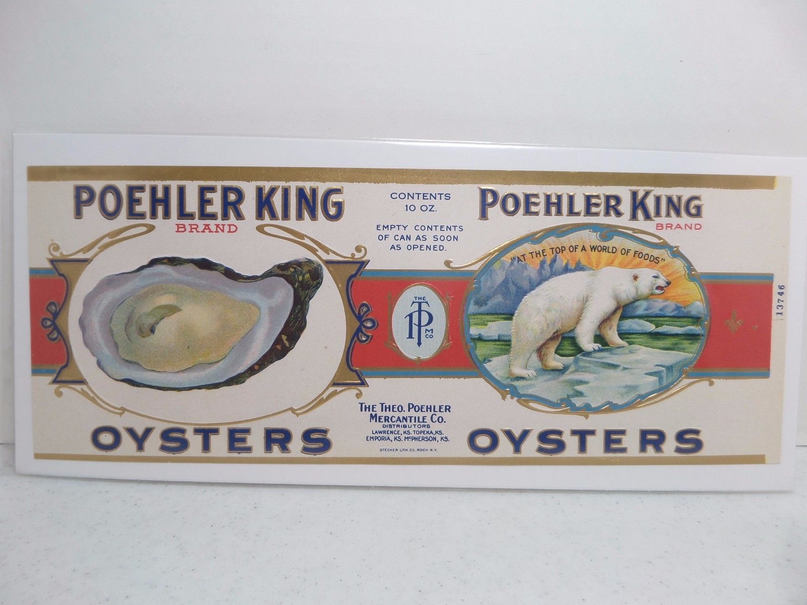 Title (ebay affiliate link): (Lot #2139) Antique Theo Poehler King Brand Mercantile Co Kansas Oysters Label