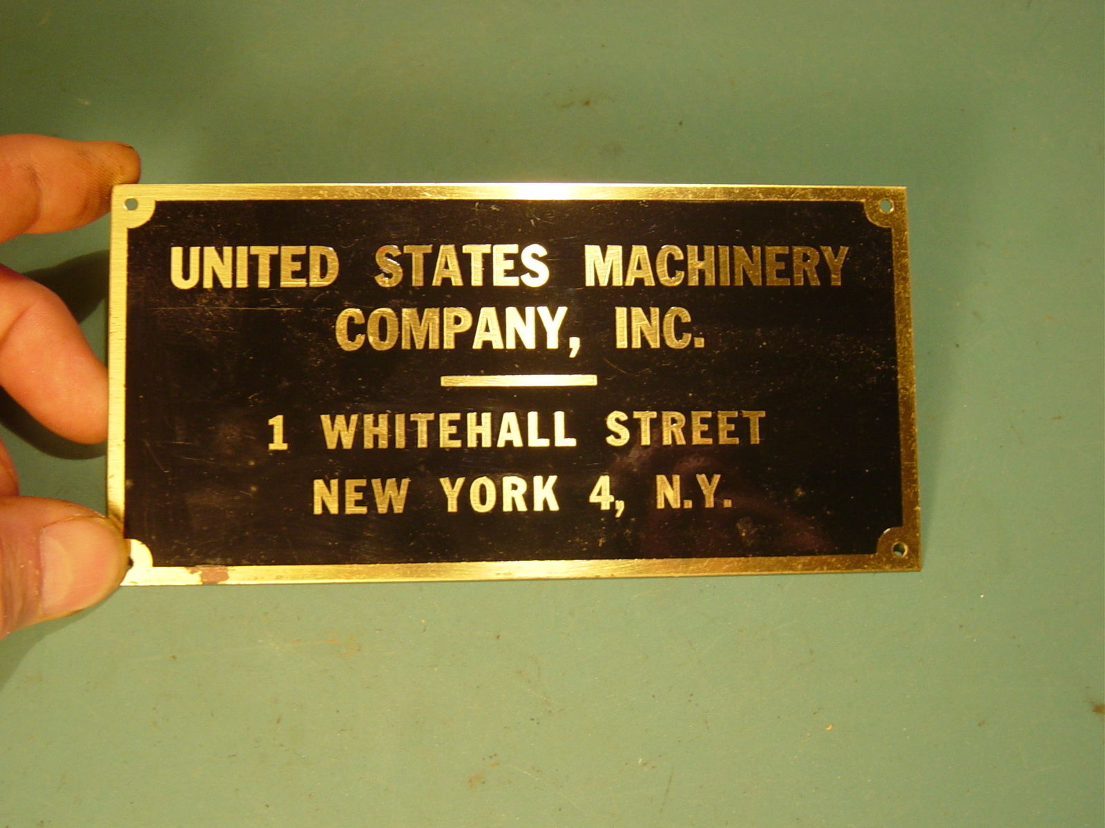 Vintage Embossed Brass Nameplate UNITED STATES MACHINERY COMPANY NOS