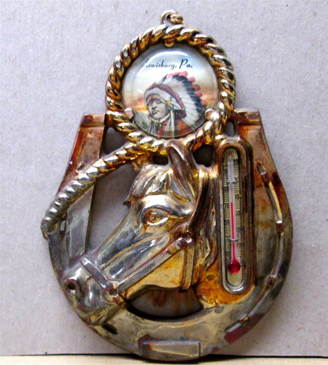 Title (ebay affiliate link): Vintage Advertising Thermometer, Horse Shoe & Indian Chief. Lewisburg, Pa.