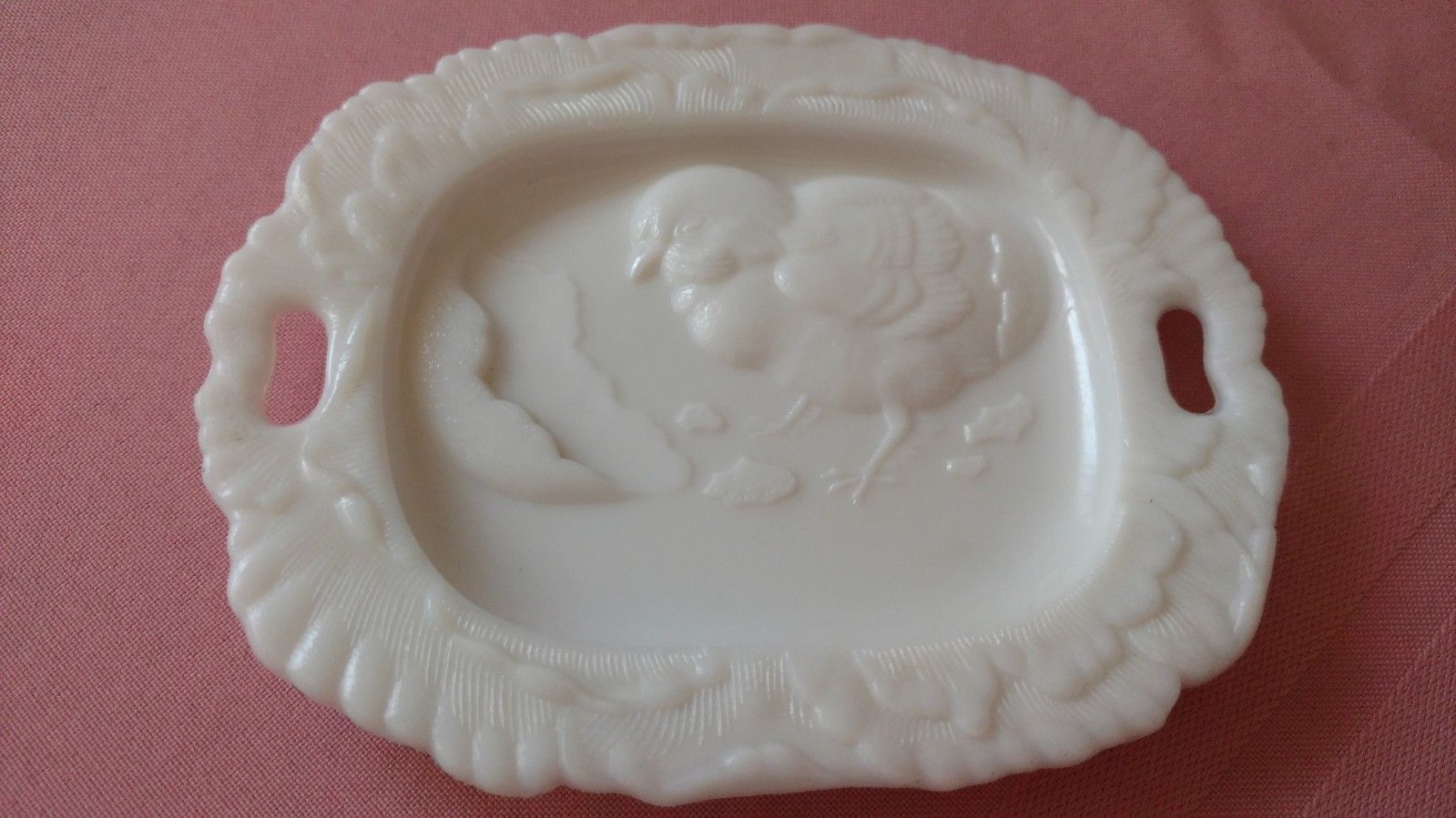 VINTAGE MILK GLASS PIN DISH TRINKET TRAY PLATE Hatching Chick RARE