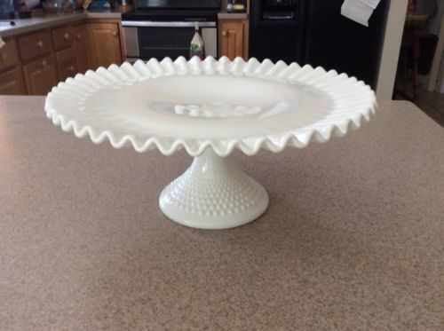 Title (ebay affiliate link): Vintage FENTON 12.5'''' White Milk Glass Hobnail Ruffle Cake Plate Pedestal Stand