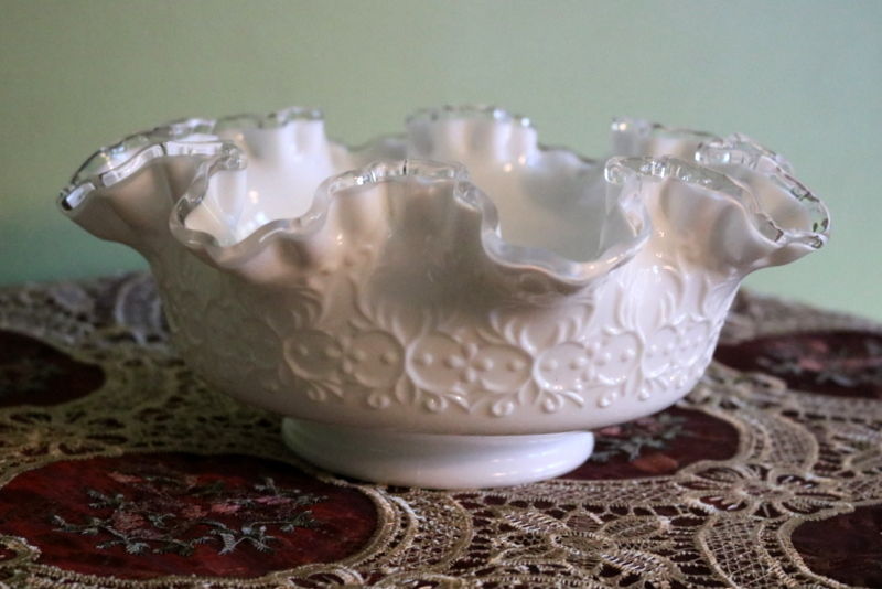 Fenton Milk glass Spanish Lace Silver Crest bowl