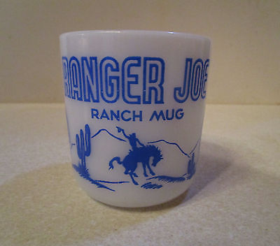 Hazel Atlas Ranger Joe Ranch Mug, Milk Glass, Blue Lettering, 1950s Excellent
