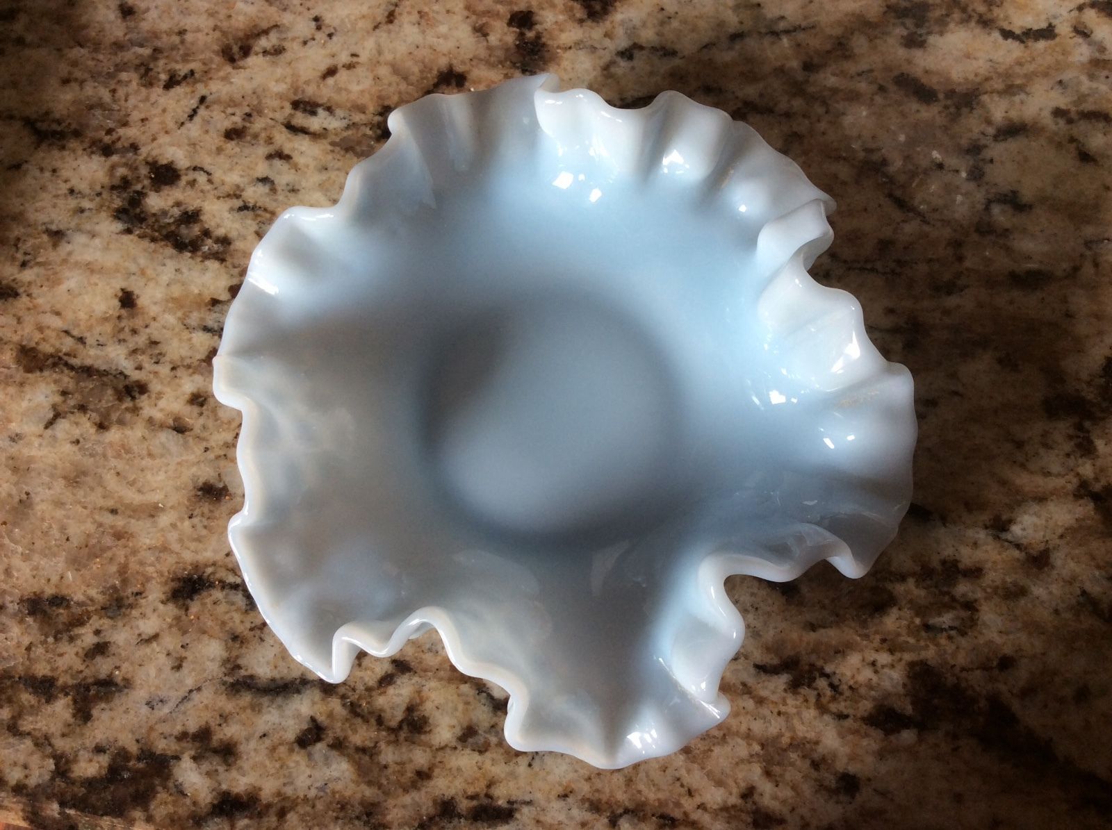 Fenton rare pastel blue hobnail milk glass bon bon dish