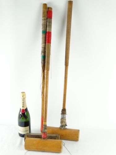 Title (ebay affiliate link): 2 Antique F Hayres London Timber Croquet mallet plus another brass bound England