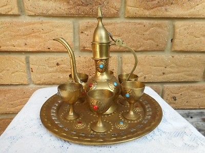Vintage Brass Ornamental Coffee Pot and Cups!