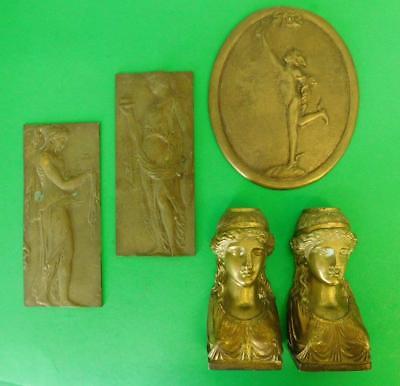 5 Superb Antique Brass Plaques and figural Corbel Columns Neoclassical Figures