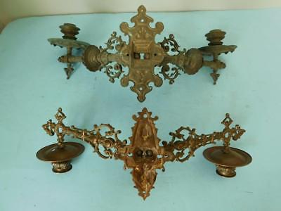 2 Beautiful Victorian Gothic Wall or Piano Sconce Double Candle Holders 1890s