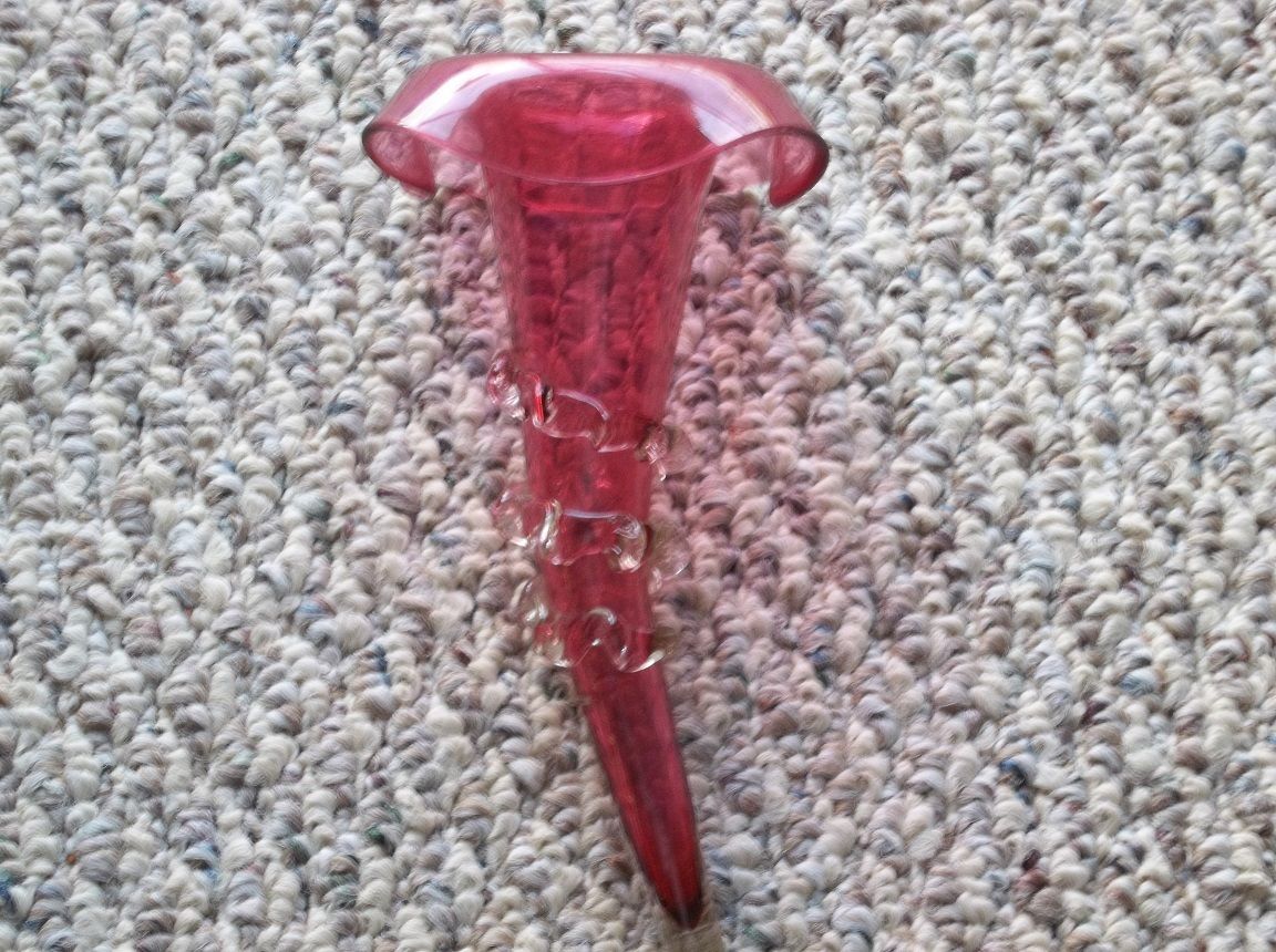 Title (ebay affiliate link): Victorian Cranberry Glass Horn for Epergne with Crystal Rigaree 19th Century