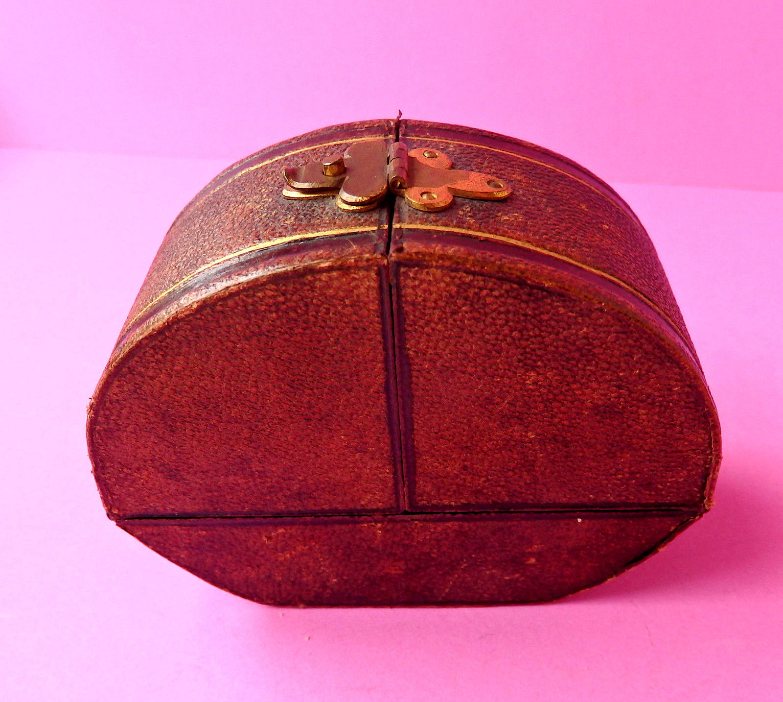 ANTIQUE LEATHER JEWELRY BANGLE BOX,FITTED VELVET & SATIN INTERIOR
