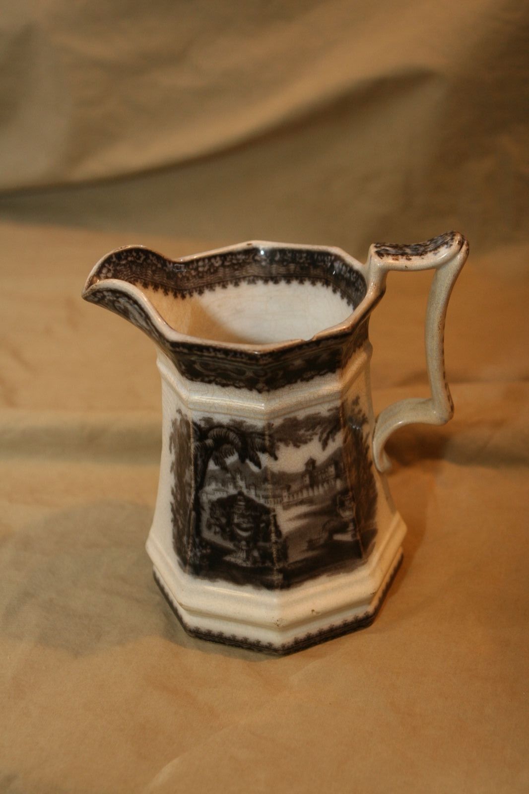Title (ebay affiliate link): Antique Ironstone 7.5" Mulberry Transfer Pitcher Unsigned Chip to Rim but Beauti