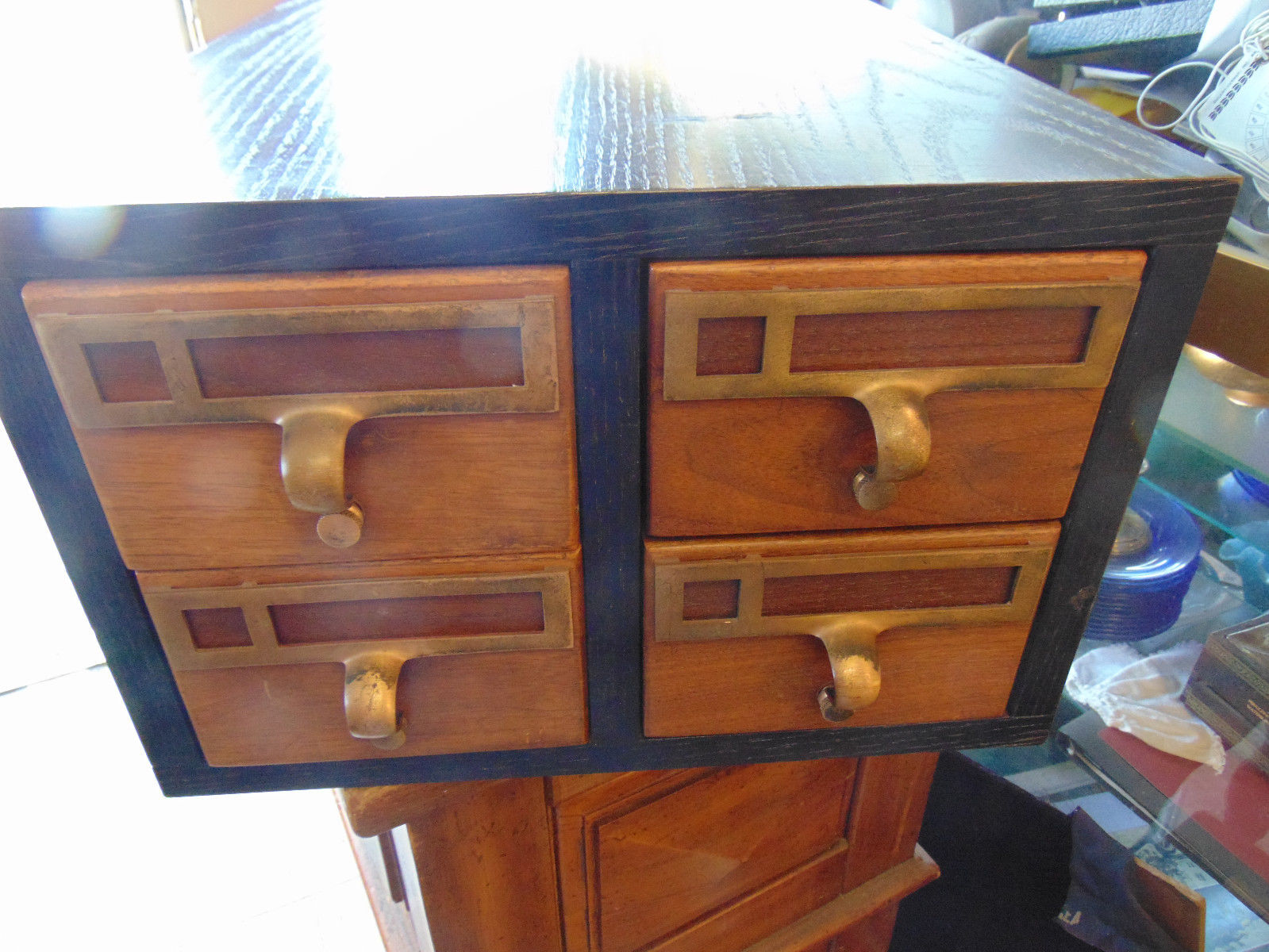 ANTIQUE WOODEN FOUR DRAWER LIBRARY INDEX CARD CABINET FILE 4 DRAWER