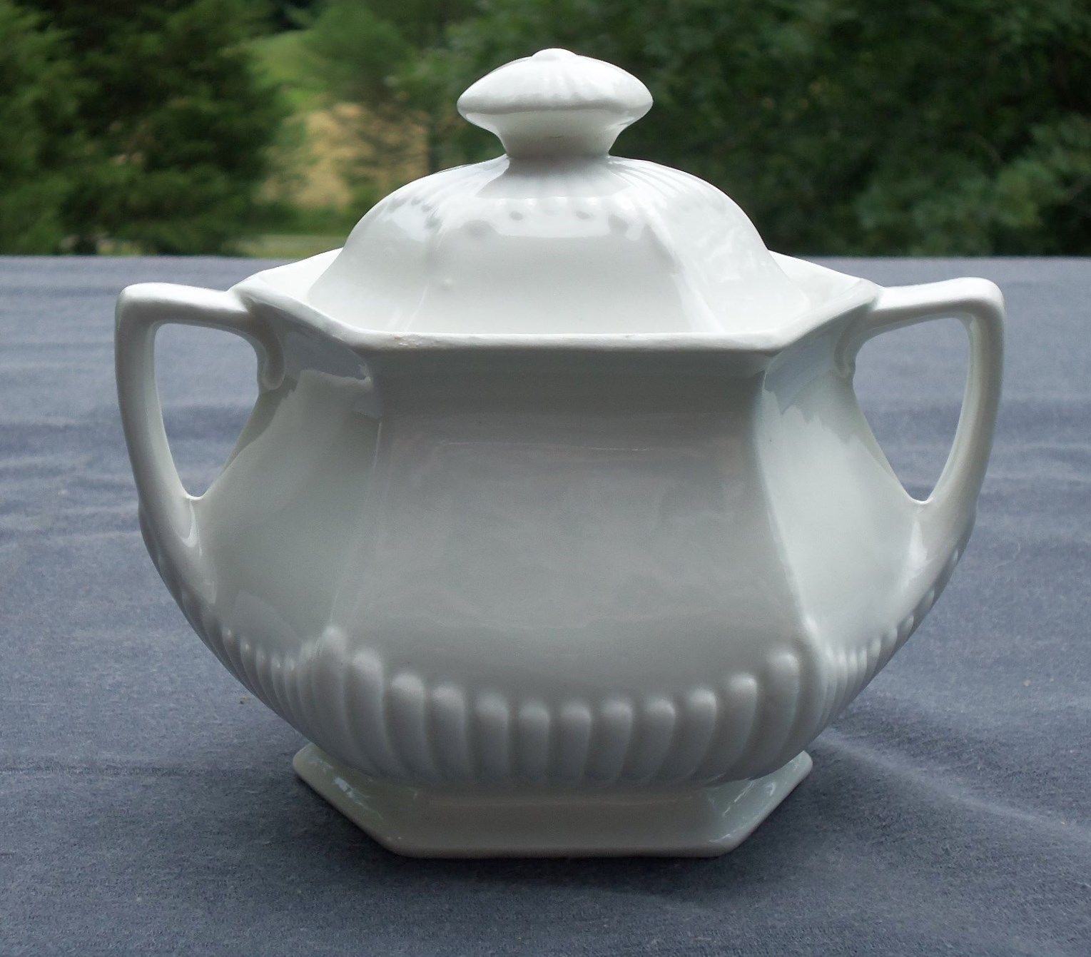 Title (ebay affiliate link): Vtg White IRONSTONE SUGAR BOWL & LID Empress, 6 panel ribbed Wm Adams & Sons