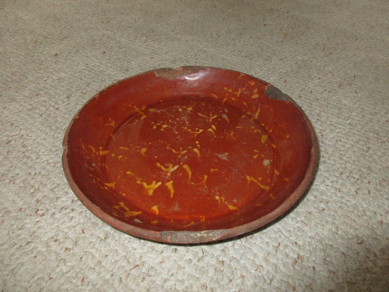 Title (ebay affiliate link): Antique 19th C Stoneware Redware Splatter Slip Decorated Dish Plate Bowl Rare