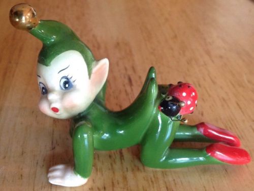 Vintage Josef Elf Pixie Hands & Knees w/Ladybug Figurine