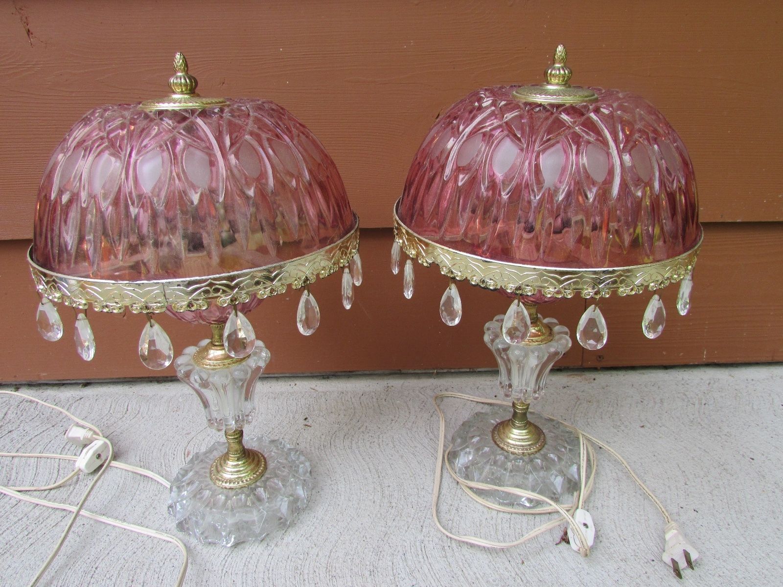 VINTAGE PINK GLASS BEDROOM LAMPS WITH PRISMS