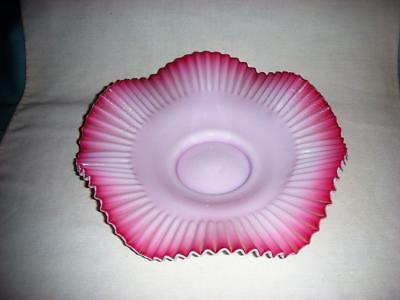 Victorian Cranberry & White Crimped/Pleated Rim Brides Basket Bowl