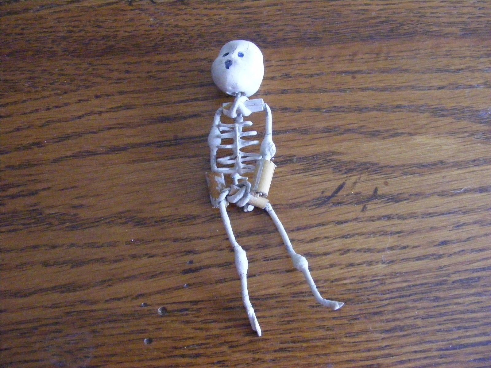 Antique Primitive Halloween Wooden Skeleton Toy Handmade