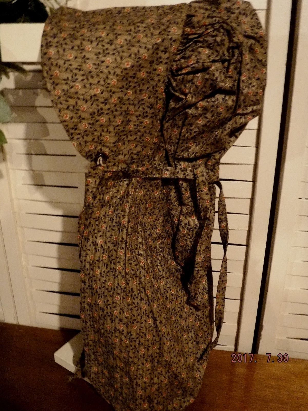 Title (ebay affiliate link): primitive tea stained prairie bonnet brown leaf stripe calico cotton fabric