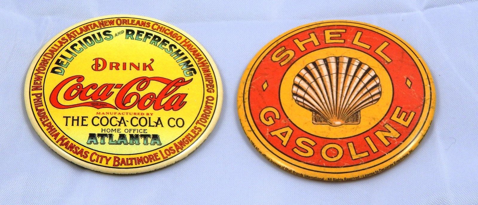 Round Coca Cola and Shell Oil Refrigerator Magnets