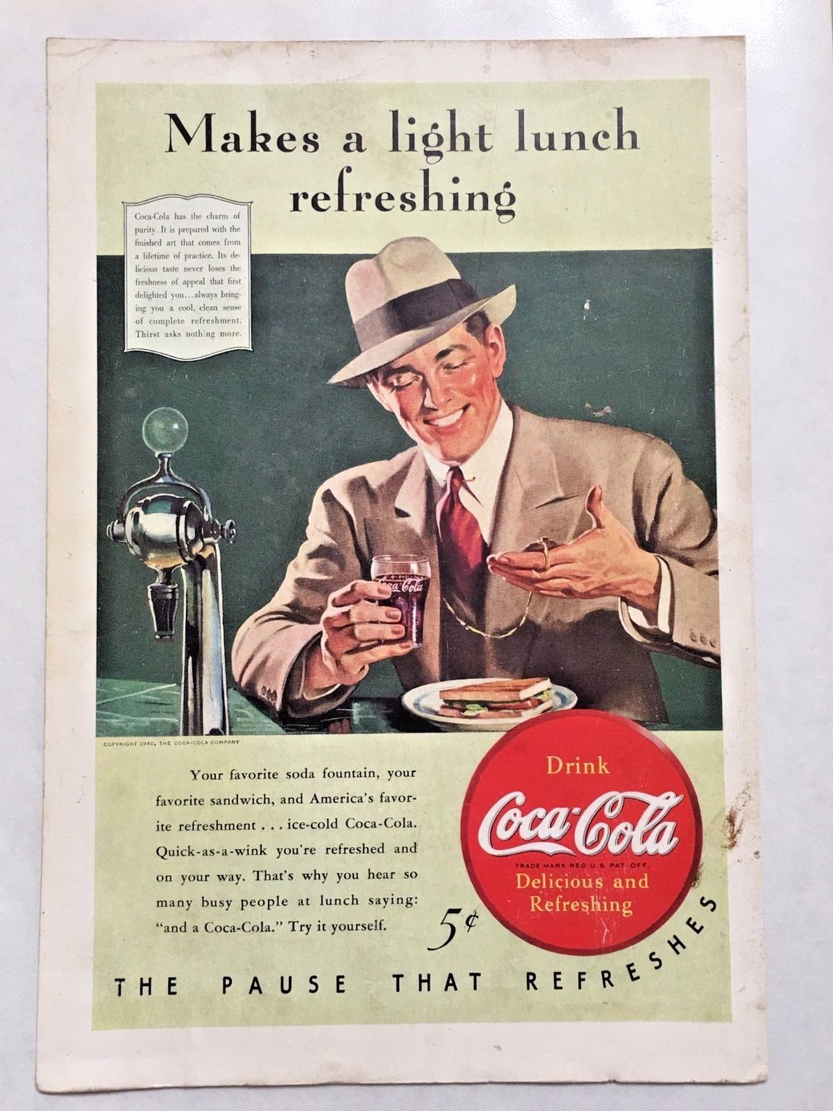 VINTAGE COCA COLA COKE MAGAZINE AD ADVERTISING 1940 BUSINESS MAN