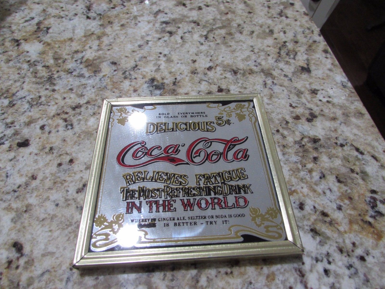 Title (ebay affiliate link): Vintage Coca Cola Mirrored Sign Metal Frame Relieves Fatigue 5 cents