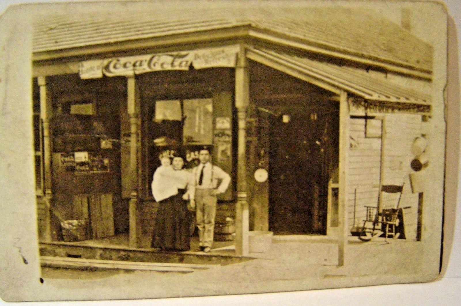 Title (ebay affiliate link): 1900''s Grocery store front with (7) COCA COLA signs & others Mom, Dad, Baby RPPC