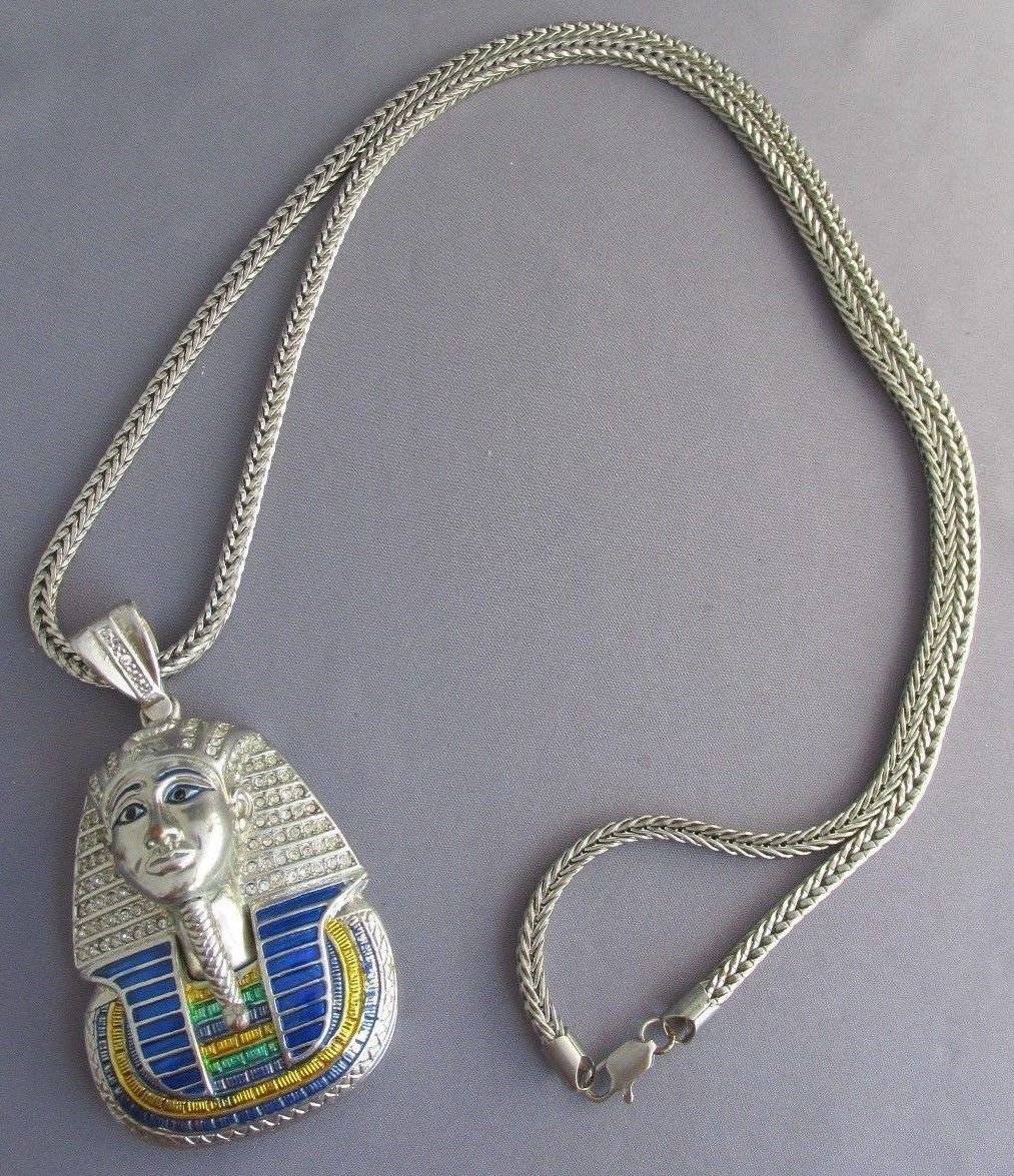 Title (ebay affiliate link): 3D VINTAGE HEAVY CHUNKY SILVER TONE EGYPTIAN KING TUT PHARAOH NECKLACE PENDANT
