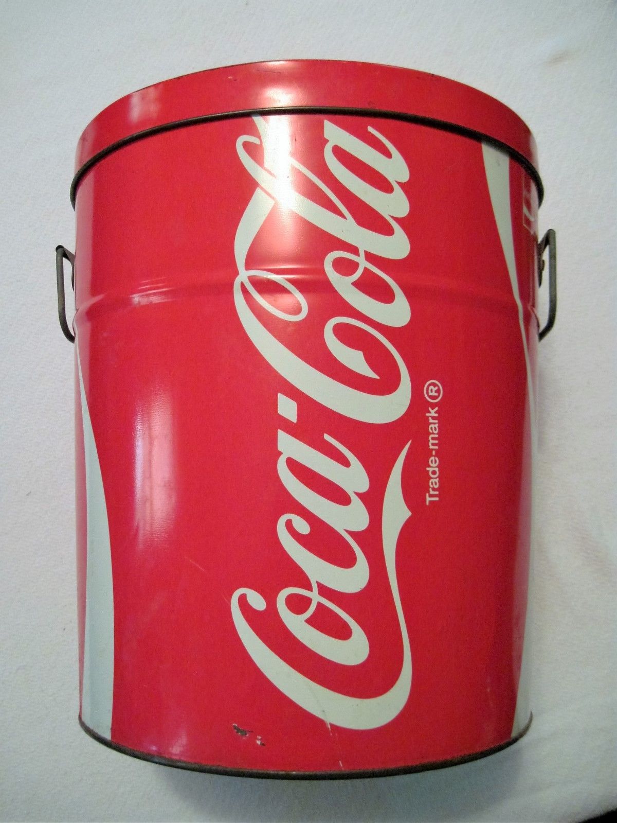 Title (ebay affiliate link): Vintage 1983 Coca Cola Metal Tin Can 11 7/8" High Popcorn?
