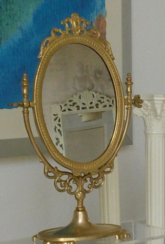 Title (ebay affiliate link): Vintage Ornate Art Noveau Style Brass Pedestal Vanity Mirror Dressing table