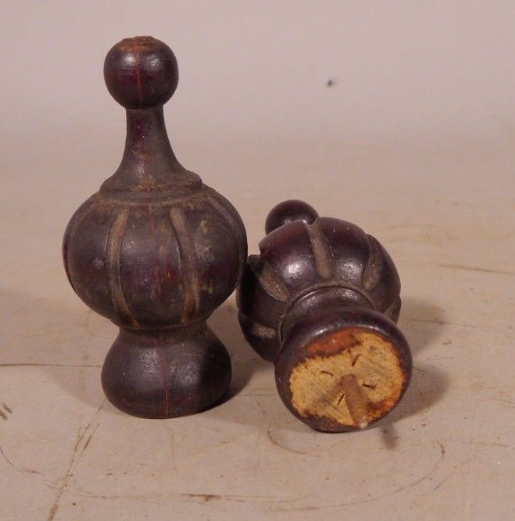 Pair Of Antique Carved Wood Finials MAHOGANY