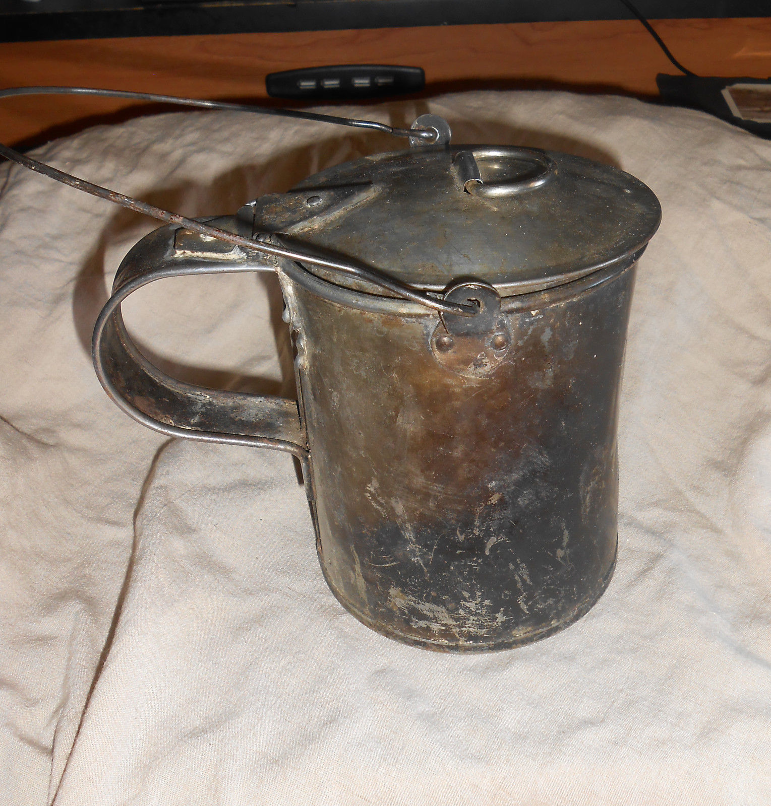 Title (ebay affiliate link): Old Soldered Tin Lidded Soup Mug w/ Bail 19th Century?