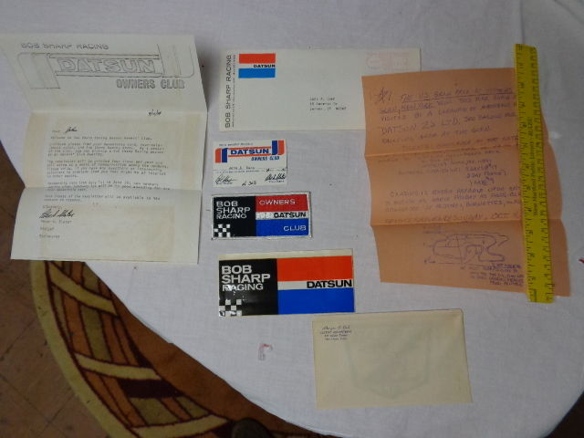 1975 Datsun Owners Club Packet, Bob Sharp Racing, Complete, Patch, Letter, etc