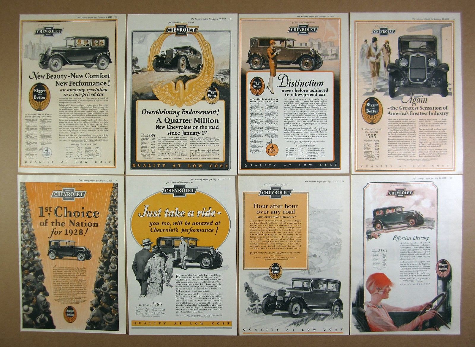 1928 Chevrolet Chevy print Ad LOT OF 29 VINTAGE ADS coach roadster truck cars