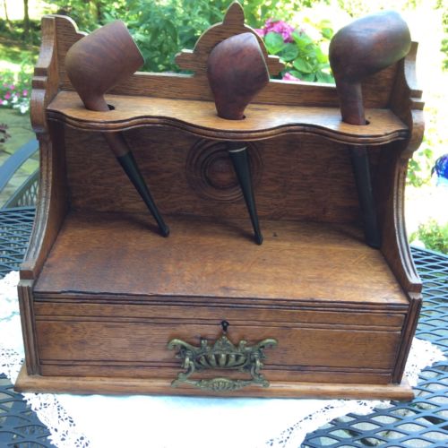 Title (ebay affiliate link): Antique Victorian Carved Oak Tobacco Cabinet w Drawer & 3 French Pipes