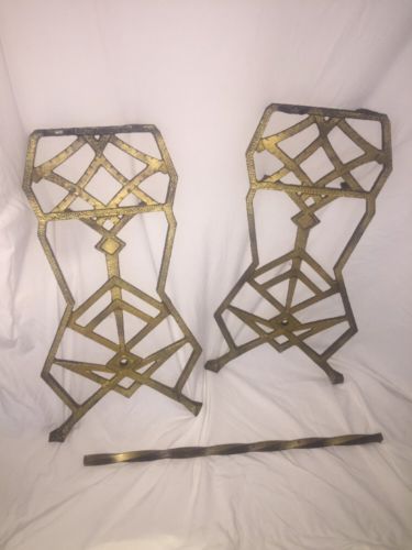 Antique Cast Brass Piano Bench Table Legs Art Deco Aztec Mission Rare Arm Rest
