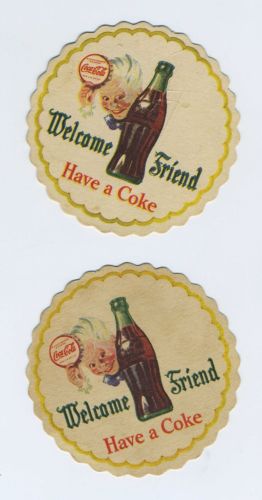 Title (ebay affiliate link): Lot (2) Vintage Coca-Cola Advertising Coasters Coke Bottle Cap Kid Mascot bv521