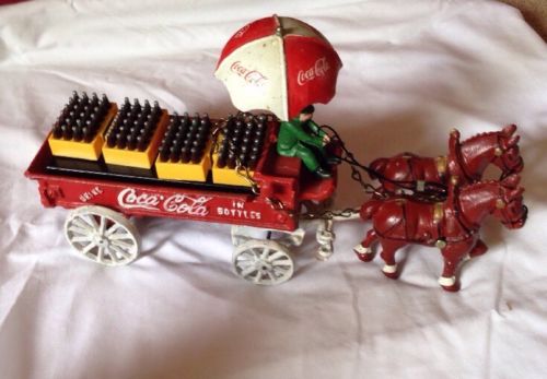 Title (ebay affiliate link): Collectible Coca Cola Cast Iron Horse Drawn Delivery Carriage