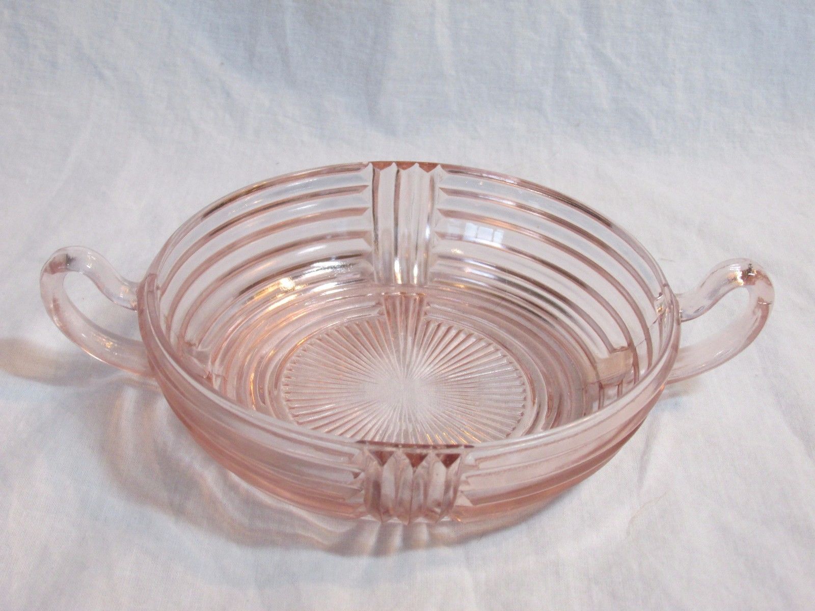 Title (ebay affiliate link): Pink Depression Glass Bowl Dish 5-11/16" diameter, 8-1/8" handle to handle