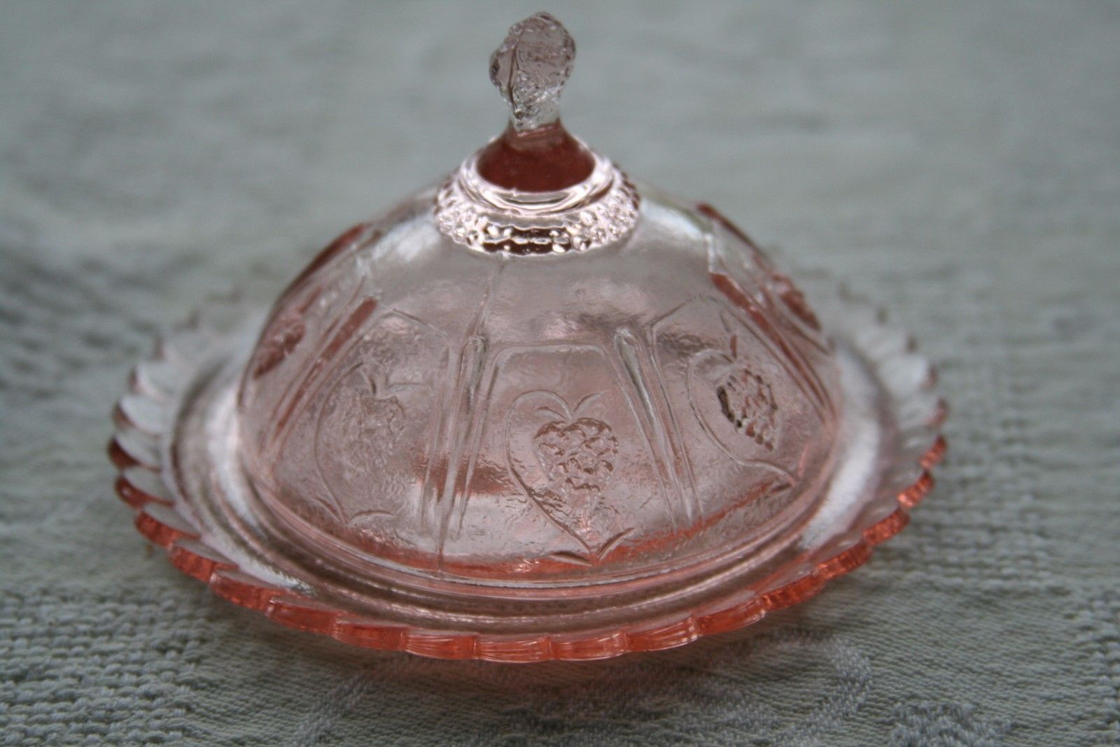 Title (ebay affiliate link): Child''s Pink Depression mini Glass Butter Dish 2 piece Depression glass,