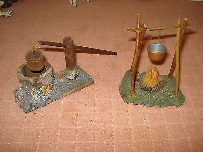 Title (ebay affiliate link): Antique Cooking Pot on Campfire & Water Well Handmade Composite & Wood