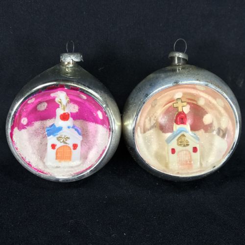 Title (ebay affiliate link): Antique Vintage Pair Of Christmas Ornaments Diorama Church Mica Mercury Glass