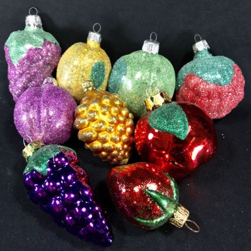 Title (ebay affiliate link): 9 Vintage Christmas Ornaments Figural Fruit Grapes Strawberry Glass lot