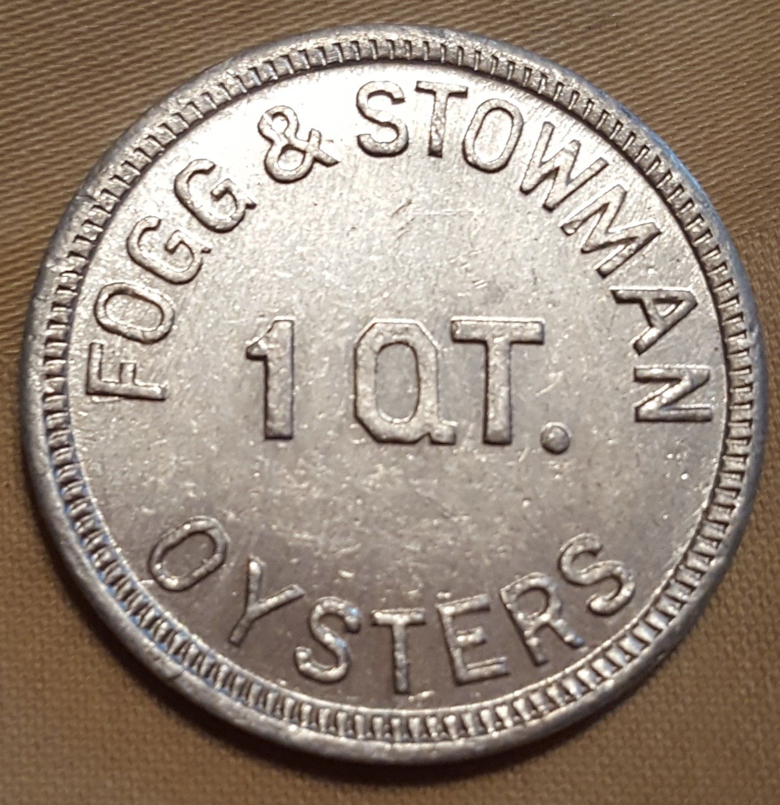 Fogg & Stowman Oyster token , NJ 1 Qt.