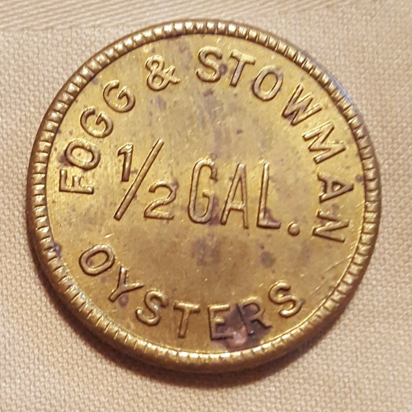 Oyster token Fogg & Stowman Oysters , Port Norris, NJ 1/2 Gal.