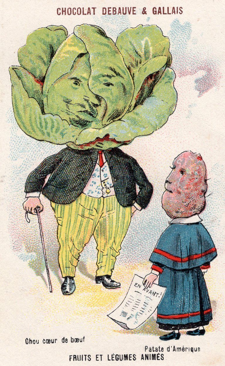 Title (ebay affiliate link): Victorian Trade Card Anthropomorphic Veggie French Chocolate Advertisement Ad