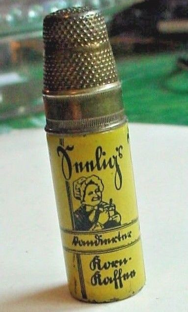 Title (ebay affiliate link): ANTIQUE GERMAN ADVERTISING SEWING NEEDLE CASE / CARRIER - THIMBLE LID