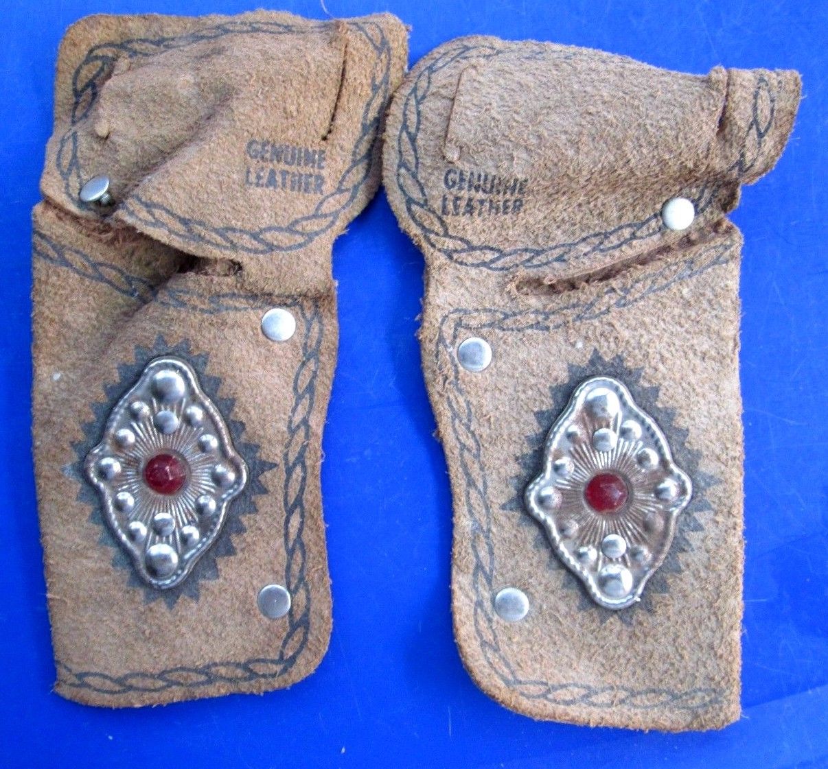 Title (ebay affiliate link): Vintage Pair Kids Genuine Leather Toy Cap Gun Holsters Riveted with Belt Slots