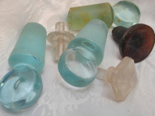Title (ebay affiliate link): Old Dug Glass Stopper Lot Aqua, Clear, Rootbeer~ Apothecary Bottle Stoppers