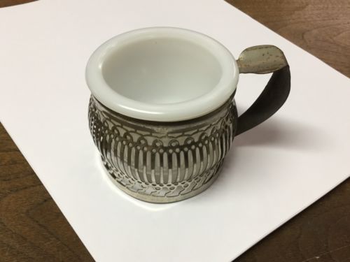VINTAGE Metal ?Silver plate? and Milk Glass Shaving Mug